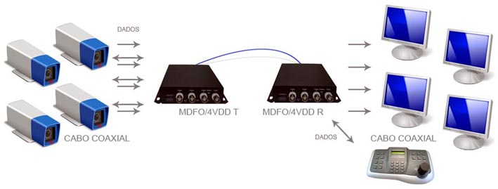 MDIFO/4VDDM T | Transmissor Multiplexado para Fibra Óptica Multimodo- 3 Km- 04 Canais de Vídeo- 01 Canal Bidirecional de Dados; |